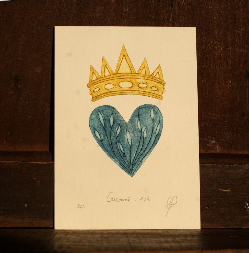 Couronné est une impression originale d’après une gravure sur tetrapak.
