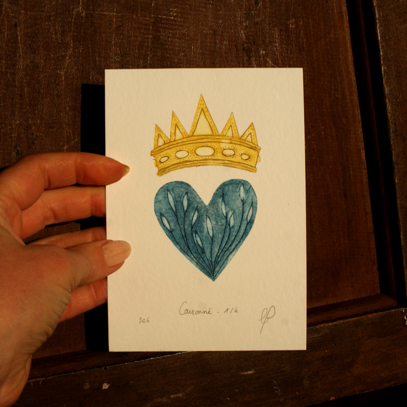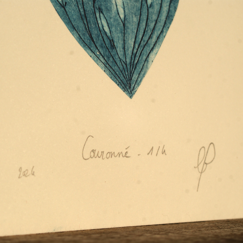‘Couronné’ a été imprimé en 4 exemplaires dans des coloris identiques, mais du fait du procédé artisanal, chaque impression est différente des autres.