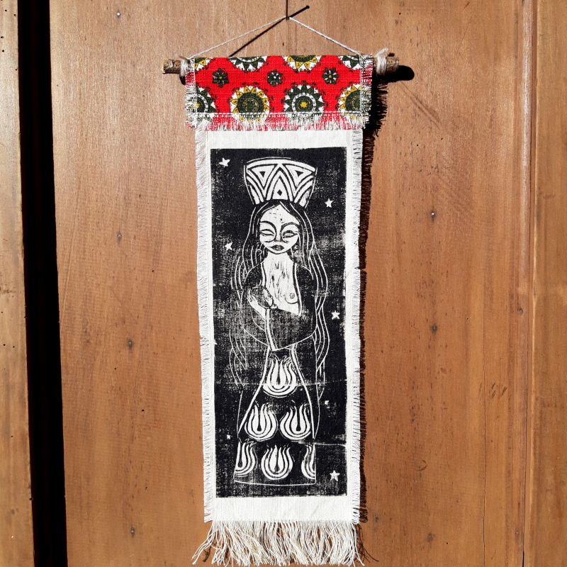 Fanion textile imprimé à la main à partir d’une gravure originale.