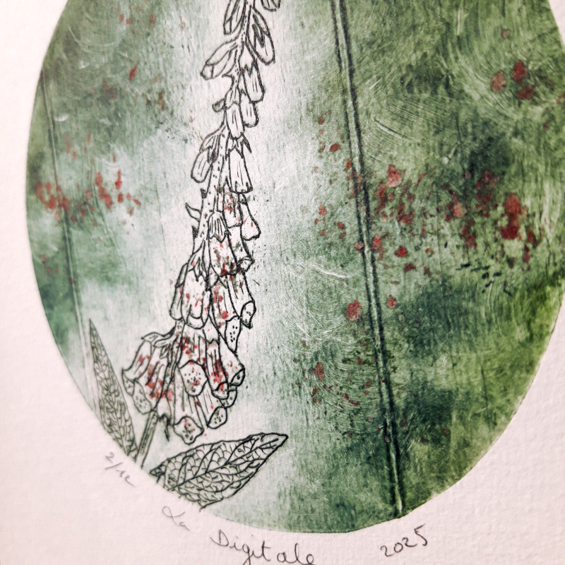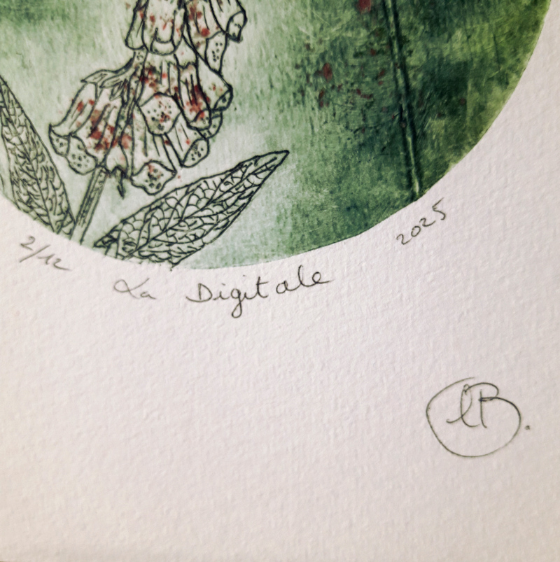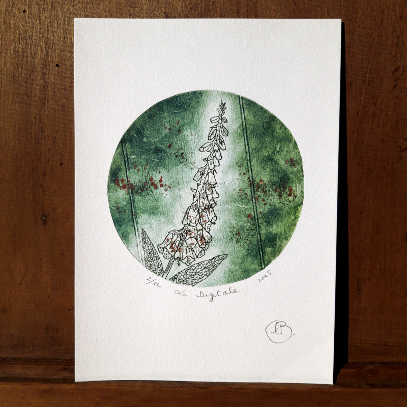« La digitale » a été imprimée en 12 exemplaires, dans des coloris et effets différents. En voici une des versions !