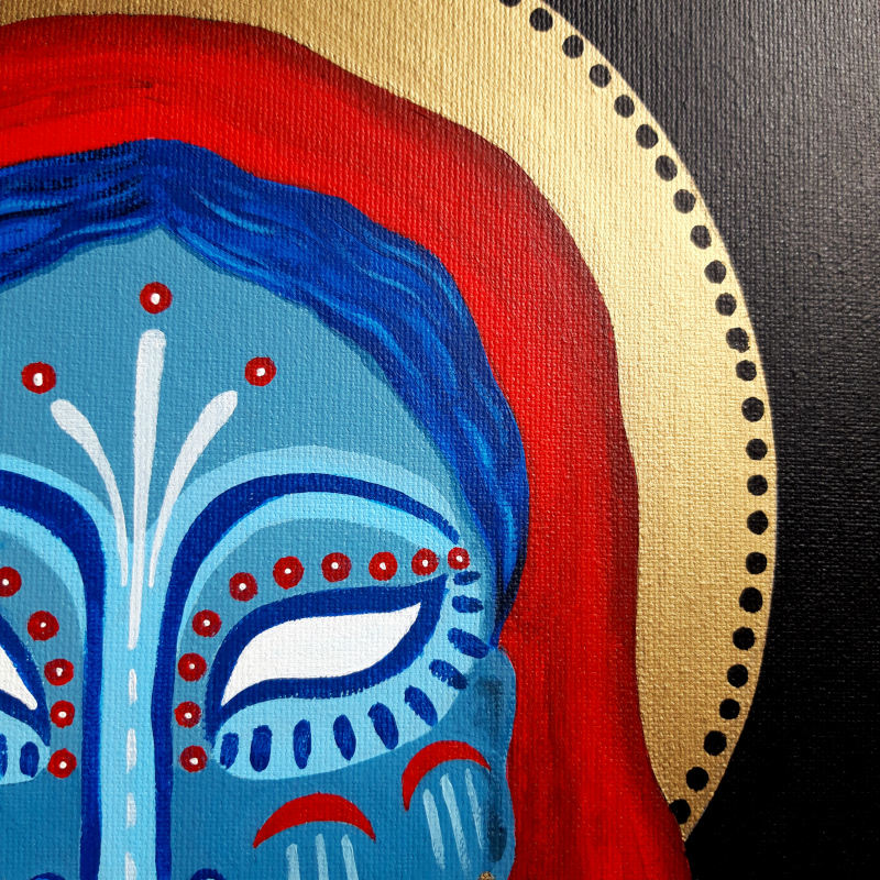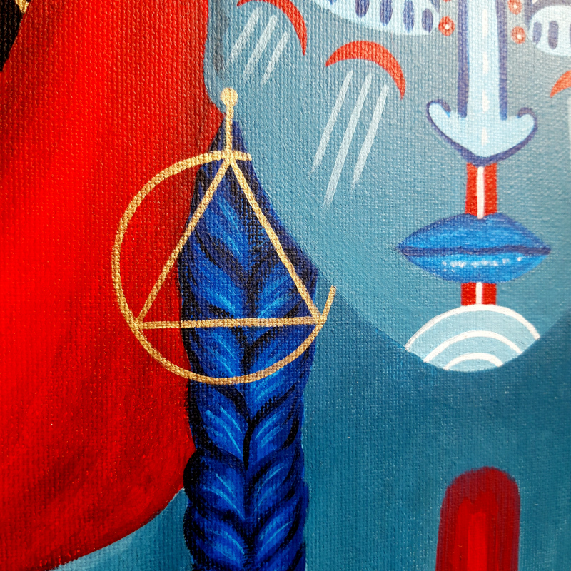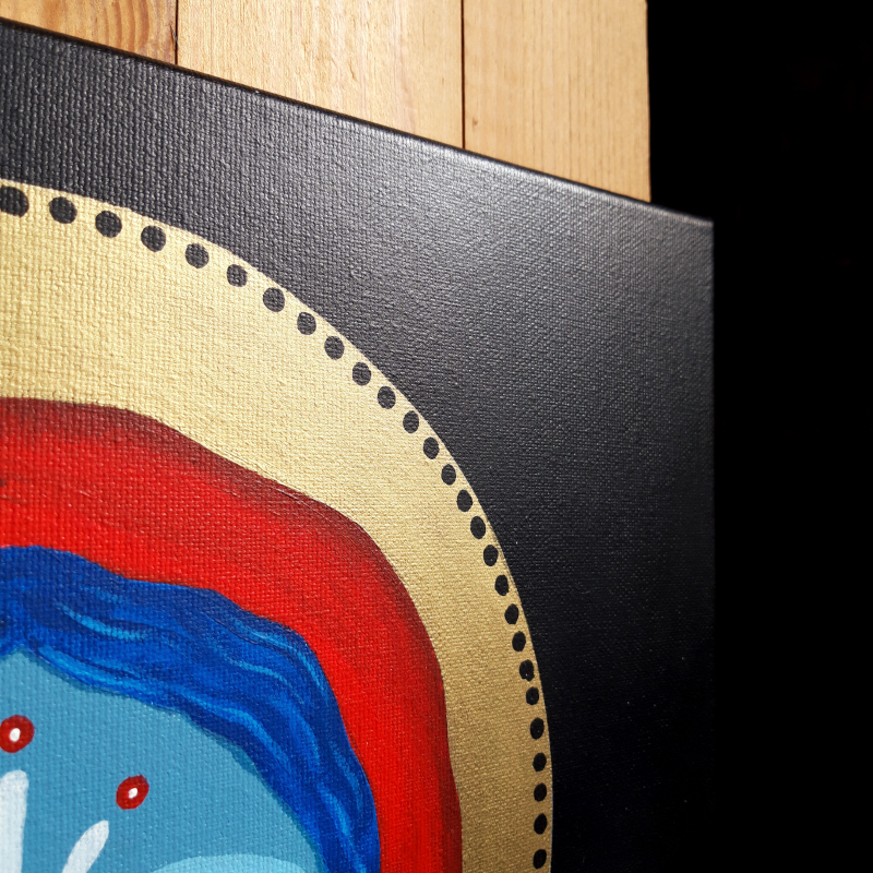 La veilleuse d’entre-mondes est peinte à l’acrylique sur une toile de coton.