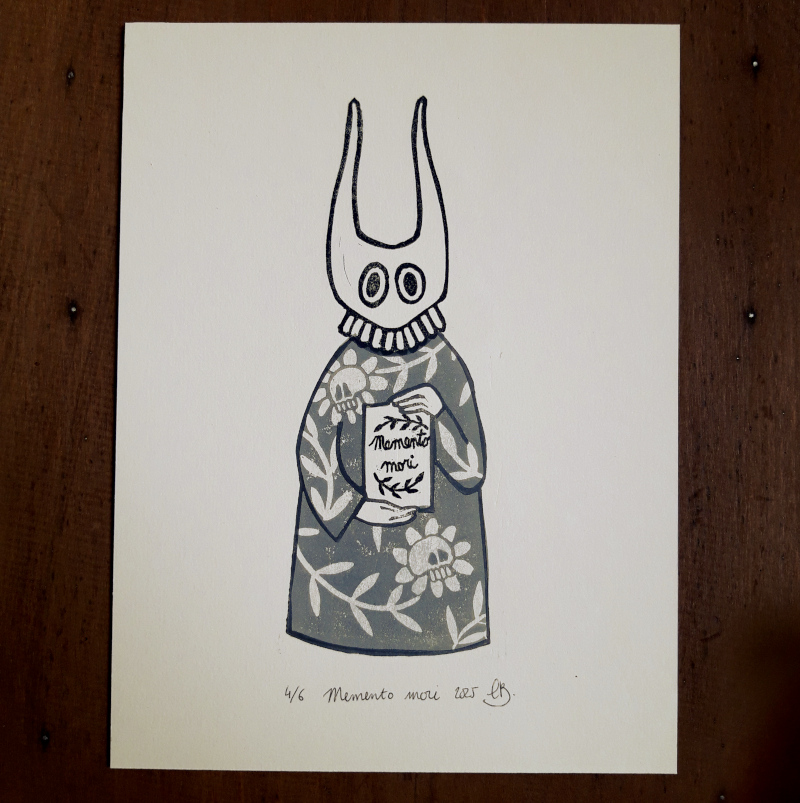 Chaque impression est réalisée selon un procédé artisanal, ce qui fait de chacune d’elles un tirage unique. Ainsi il est possible que votre impression soit légèrement différente de la photo, et c’est là un des charmes de la linogravure.